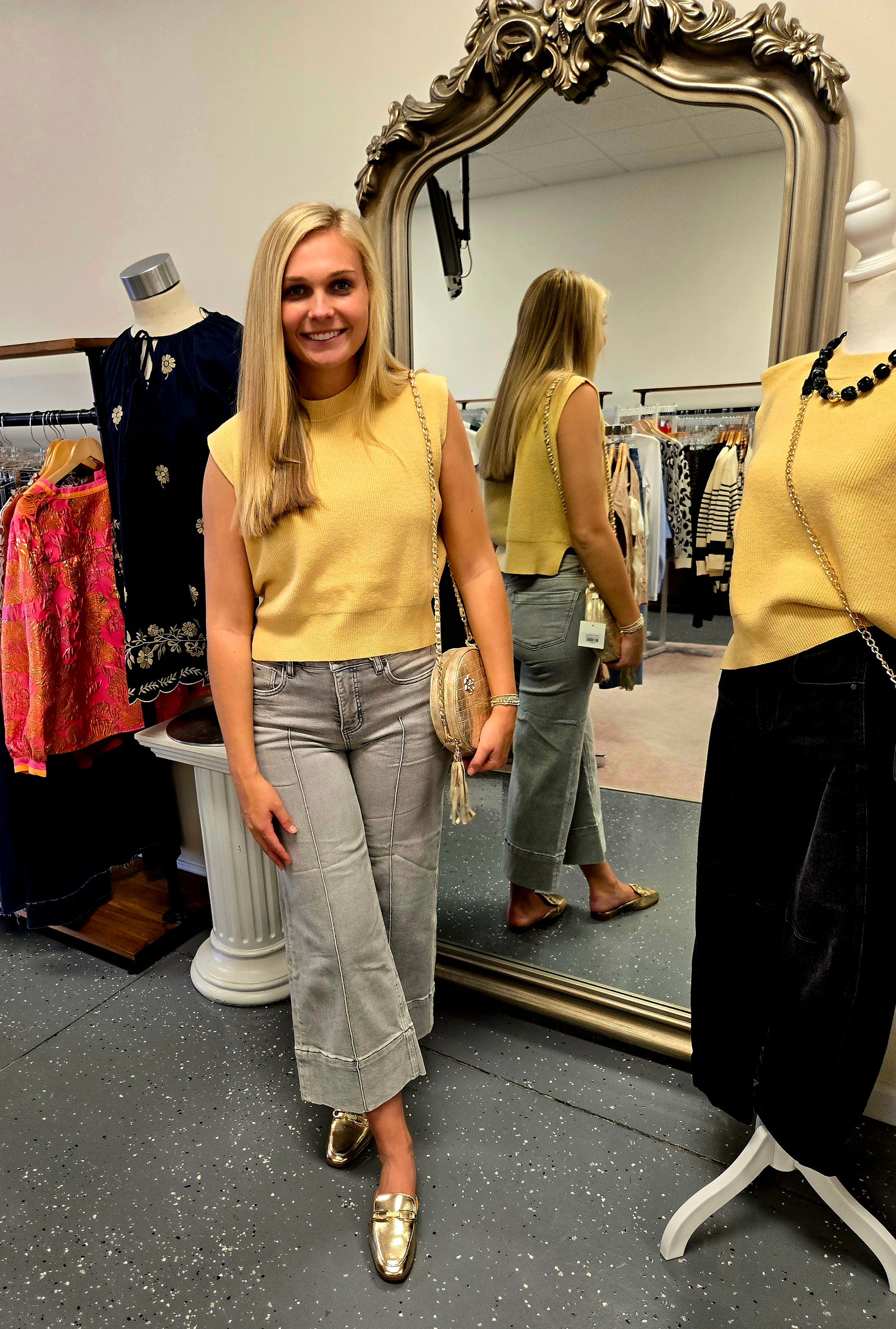 Chic and stylish this sleeveless sweater vest is perfect for layering!